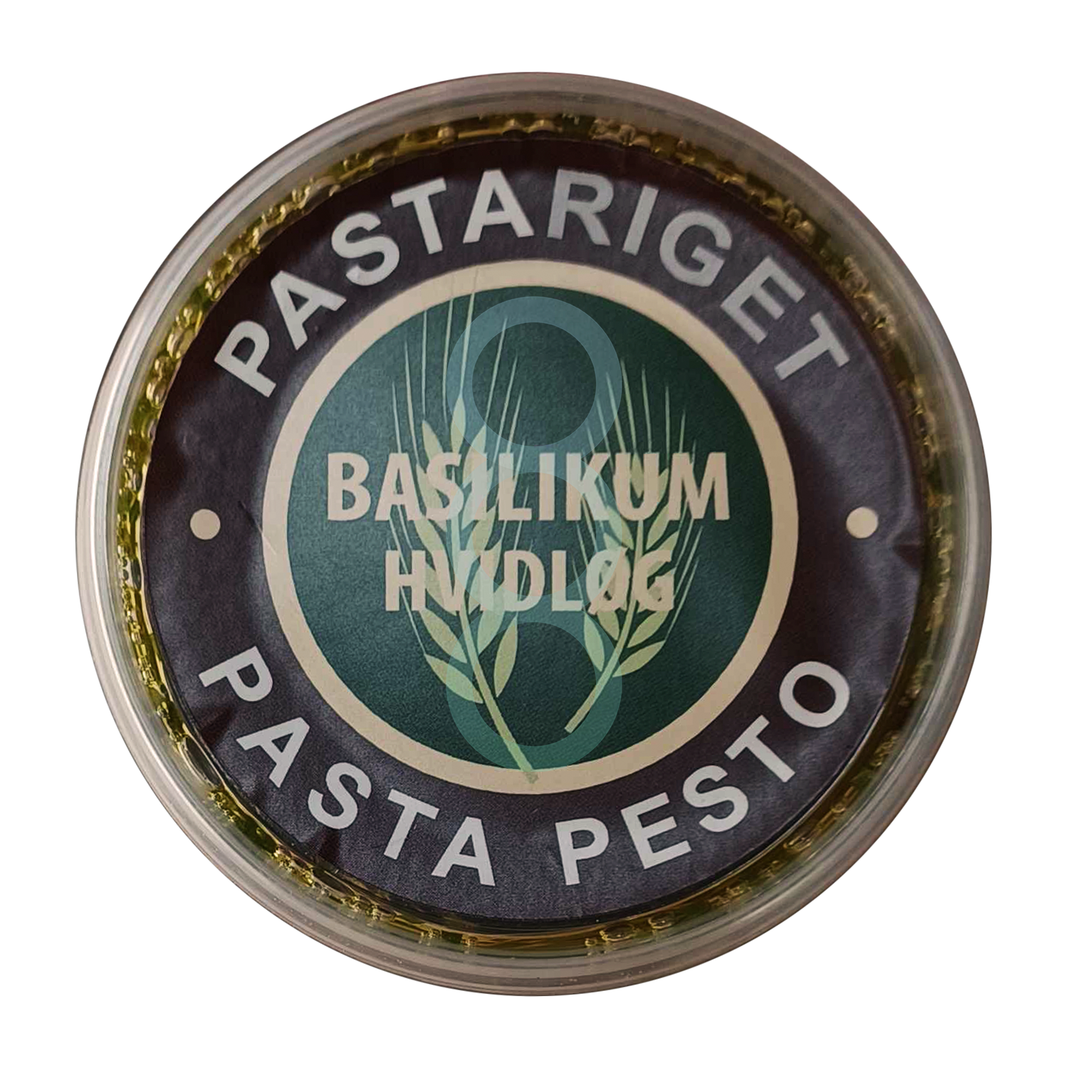 Basilikum Pasta Pesto er lavet på bornholmsk rapsolie, basilikum, hvidløg og havsalt, og produktet er udviklet som en naturlig smagsforstærker til Pastarigets Basilikum hvidløg Pasta. En bøtte pesto rækker til en pakke pasta.